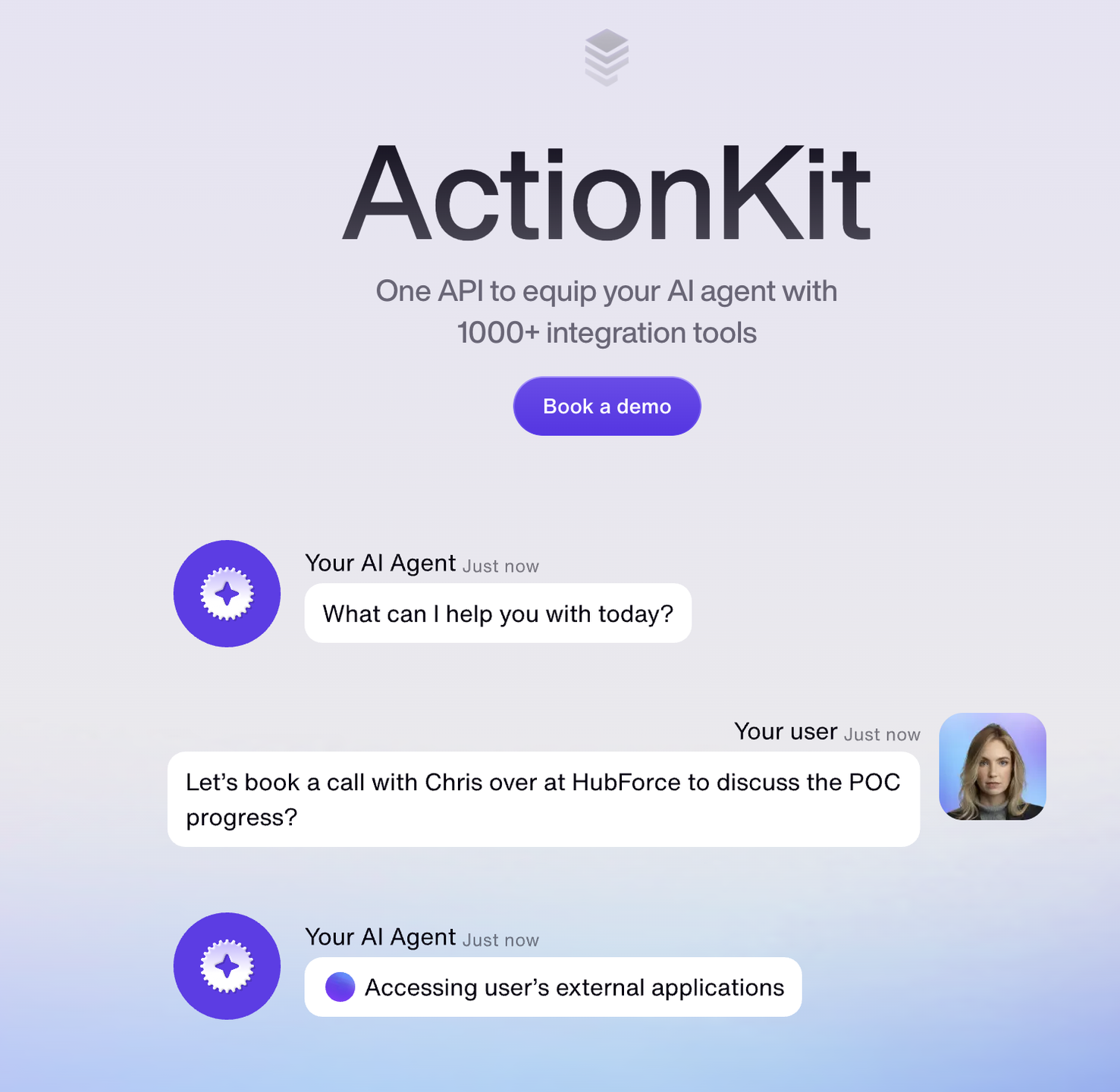 ActionKit serves as an API solution that allows AI agents to utilize more than 1,000 integration tools from diverse third-party applications. By utilizing ActionKit, developers can significantly enhance the functionalities of their AI agents, empowering them to execute tasks like sending messages, generating records, and fetching data from external services. This integration simplifies the enhancement of AI agents with a wide range of features, ultimately minimizing both development time and the effort required. Furthermore, ActionKit's extensive toolset enables a more seamless interaction between AI agents and various external platforms, which can lead to more efficient workflows.