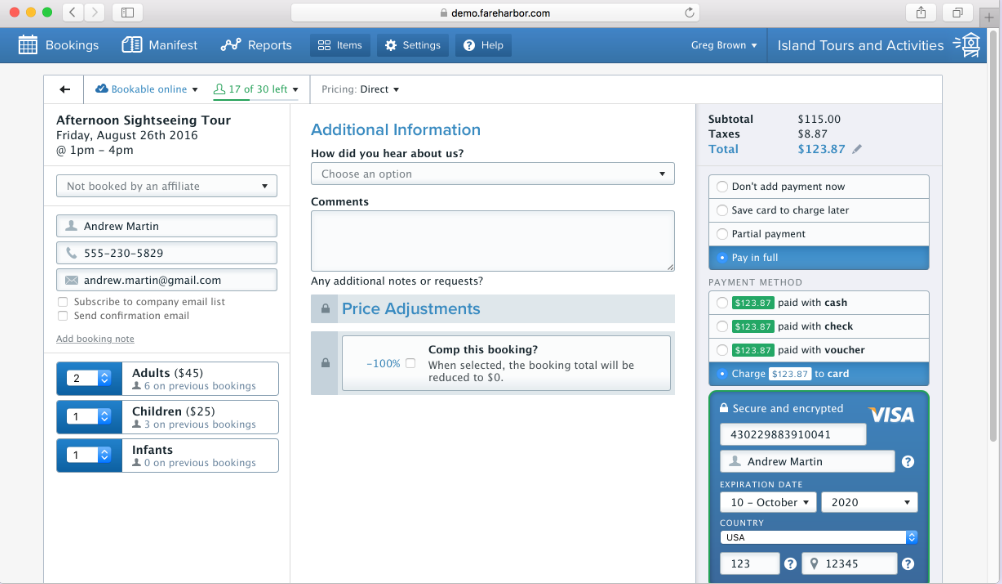 FareHarbor is a robust software solution designed for online booking and management, specifically tailored to enhance profitability and efficiency for tour and activity businesses. This platform equips operators with a comprehensive set of tools necessary for overseeing their daily operations through a unified dashboard. In addition to simplifying management tasks, FareHarbor allows tour and activity providers to gather customer data, facilitate digital waiver signatures, and process credit card transactions from any device. Overall, it streamlines various aspects of business operations, making it an essential resource for companies in the industry.