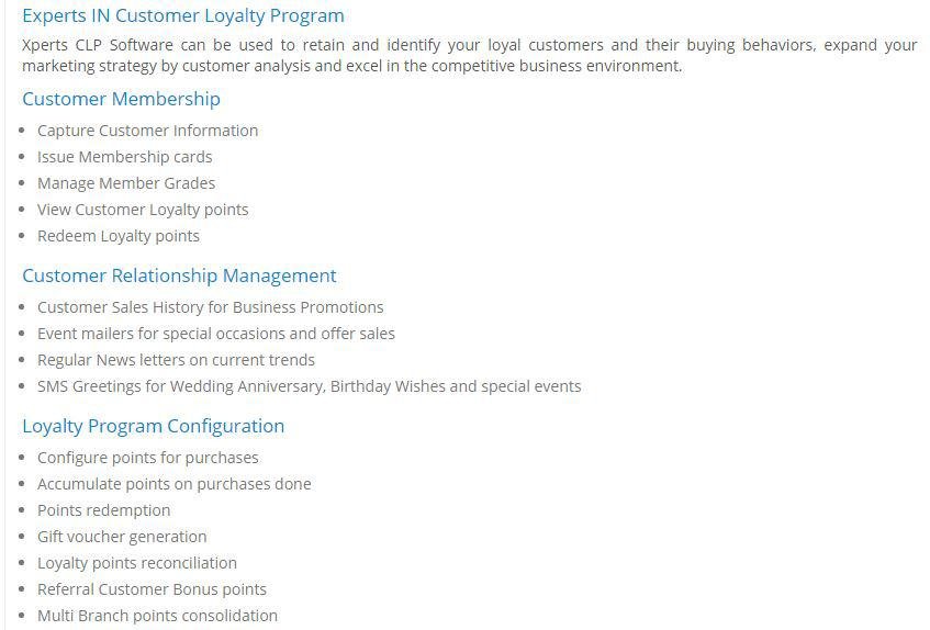 The Xperts CLP Software is designed to help businesses recognize and retain their loyal customers by analyzing purchasing patterns, thereby enhancing marketing strategies and thriving in competitive markets. It allows you to collect customer data, issue loyalty cards, manage membership levels, track loyalty points, and redeem those points effectively. The software also facilitates the analysis of customer sales history for promotional activities, sends event mailers for special occasions, and provides regular newsletters on the latest trends, along with SMS greetings for anniversaries, birthdays, and other significant events. Additionally, Xperts CLP Software can seamlessly extract and export financial operations to accounting programs like Tally, ensuring that your financial records are well-maintained. With robust SMS integration, it aids in promoting your business effectively in a crowded marketplace. Furthermore, this software empowers business owners to stay connected with their customers, fostering long-term loyalty and engagement.