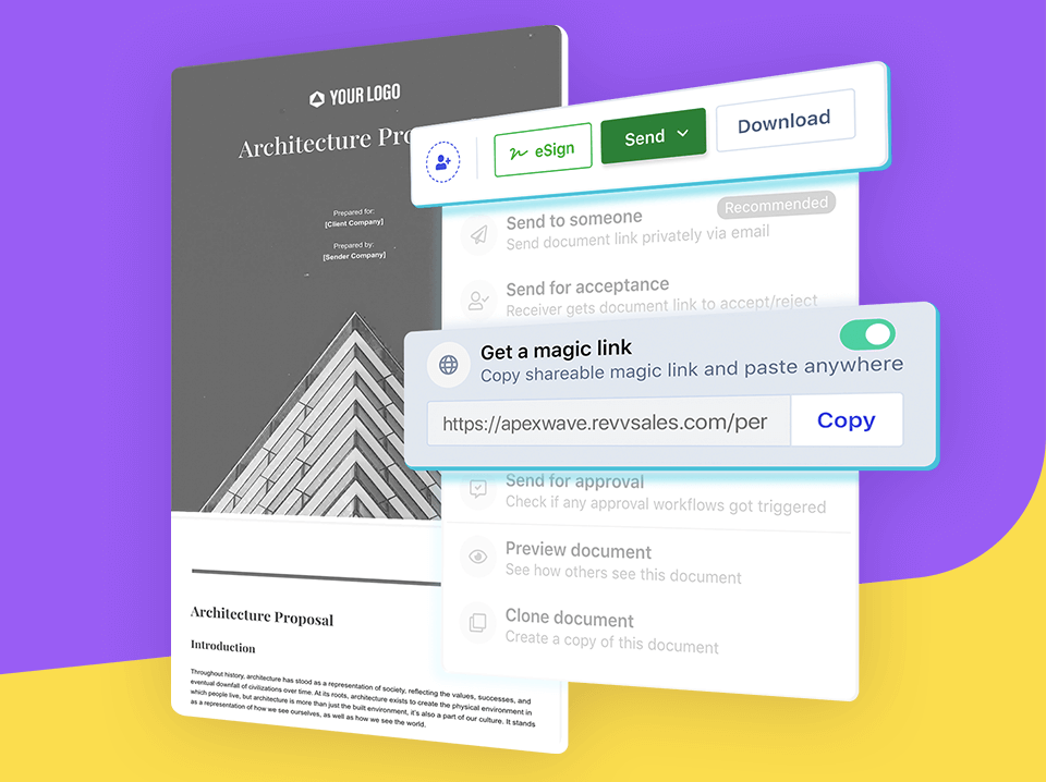 You can concentrate on your job by having all documents organized in one place. Revv's machine-learning capabilities allow you to efficiently navigate and analyze complex counter-party files and reduce dependence on experts. Integrate with Zapier to integrate with CRM and payments systems, or connect to Google Sheets to import data into documents.