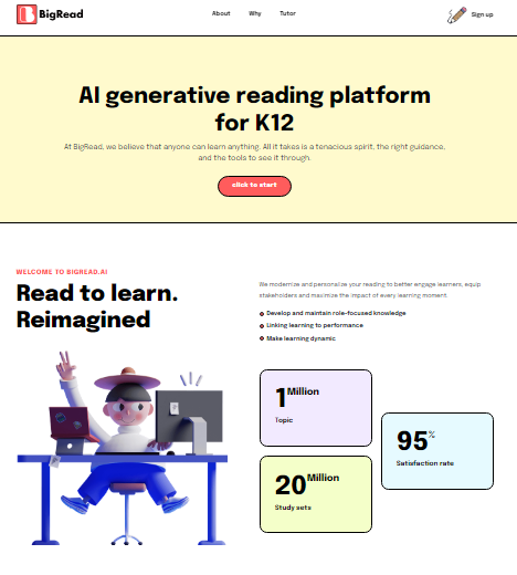 At BigRead, we are committed to the idea that everyone has the potential to learn anything; it simply requires a persistent attitude, effective guidance, and the appropriate resources to succeed. Our approach involves modernizing and tailoring the reading experience to enhance learner engagement, support stakeholders, and optimize the effectiveness of each educational encounter. We utilize adaptive technology that meets students right at their current reading levels, ensuring they receive personalized support. Our proven, standards-aligned exercises for students in grades K-12 are designed to boost reading comprehension effectively. In addition, we provide comprehensive reports and insights for both learners and course administrators to track progress. To foster a vibrant classroom environment, we offer interactive reading activities and competitions that maintain student interest. Our user-friendly interface allows you to get started quickly, and we provide human assistance whenever necessary, ensuring that we align with your product objectives, context, and technological requirements to create a meaningful impact on learning. Ultimately, our goal is to empower students and educators alike, facilitating an enriching educational journey.