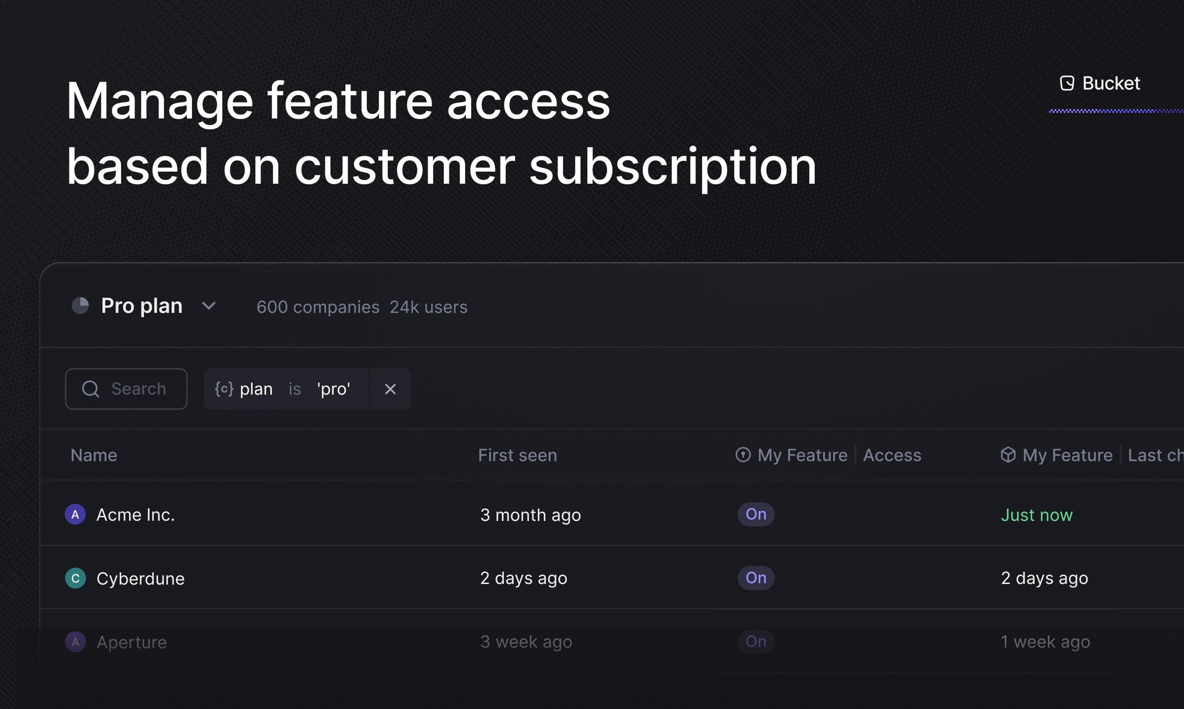 📍 Purpose-built: Bucket is built for the B2B use case, which makes everything simpler.