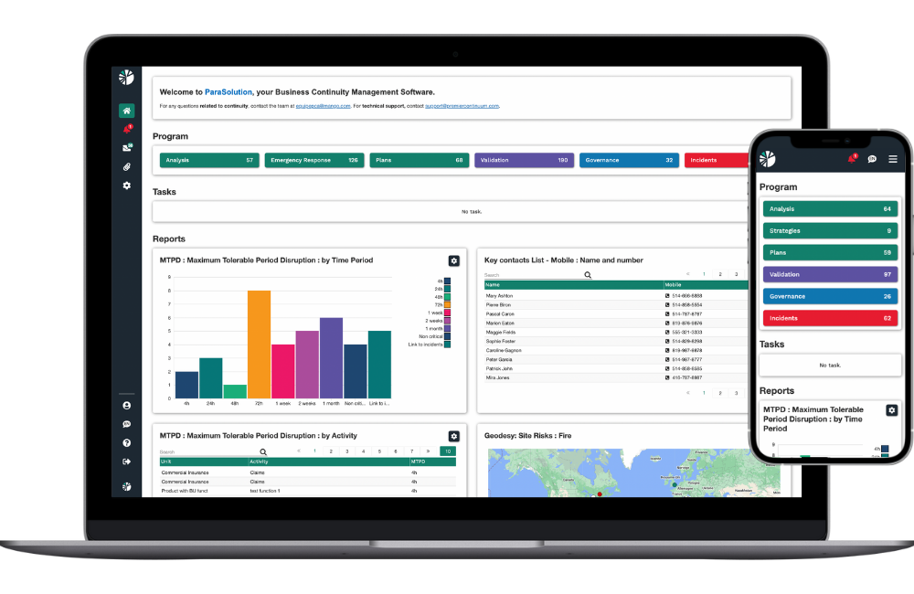 ParaSolution is a business continuity management software that has been helping organizations increase their resilience for over two decades. Our solution allows organizations to effectively manage risks, crisis plans and continuity program, enabling them to meet the most stringent industry compliance and governance standards.