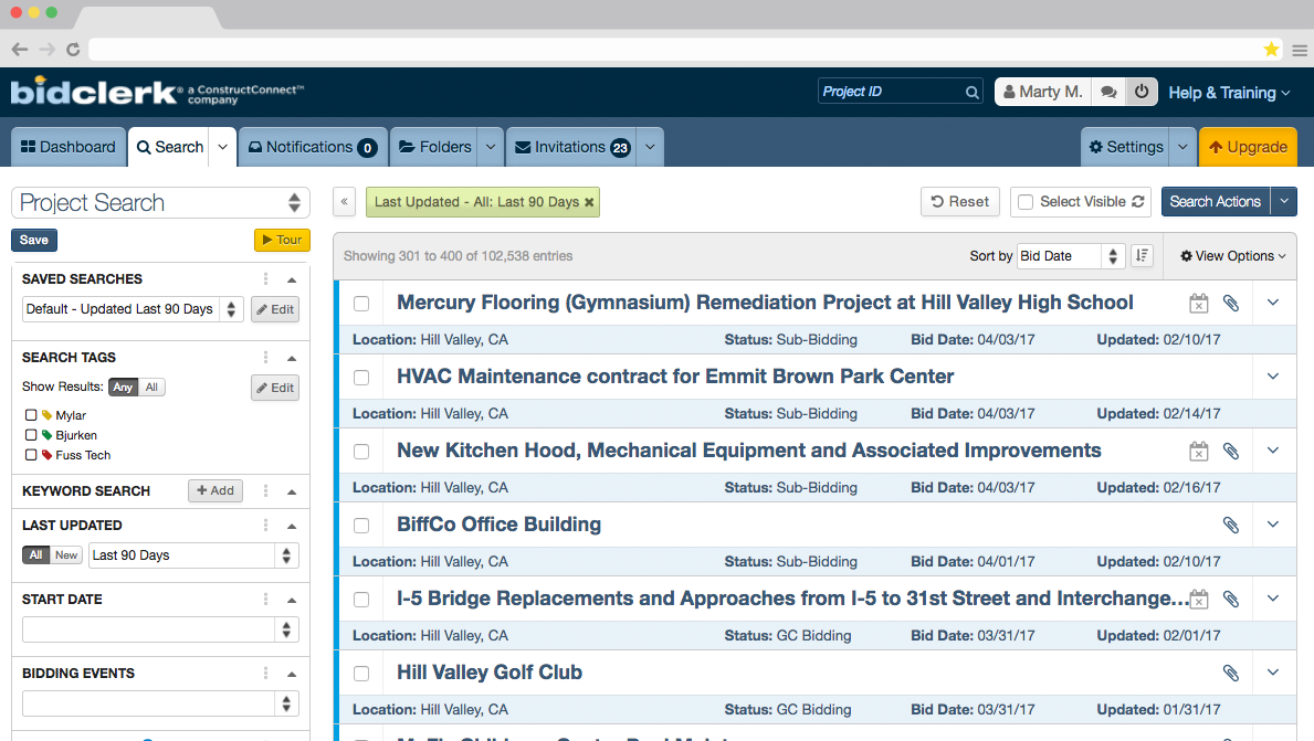 Spend less time trying to find key stakeholders and more time winning the jobs which are most important to your company. Don't search, let the leads come to your company. You can create custom saved searches that you set up based on your criteria and receive email updates with the latest results. Even if you aren't at the office, you will always be informed about any developments in your project. Our advanced search criteria allows for instant access to the most comprehensive information available on projects, companies, and contacts in the industry. The industry's fastest and most complete document search functionality. To find the perfect matches, search all documents, including specifications, plans, and addendums, for keywords, CSI codes, or phrases.