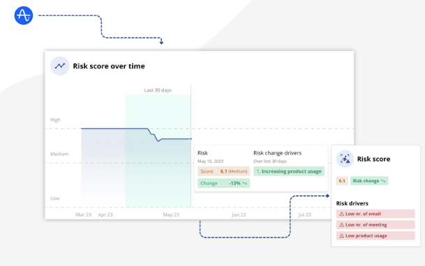 Our cutting-edge technology analyzes all customer interactions, including emails and chats, Slack activity and video calls. It then connects the human signals to produce relationship-based insights like stakeholder changes, positive and negative sentiment trends, problematic subjects, and more. Our human analytics, when combined with existing product analytics provide the missing element to fully understand your customer to grow at scale.