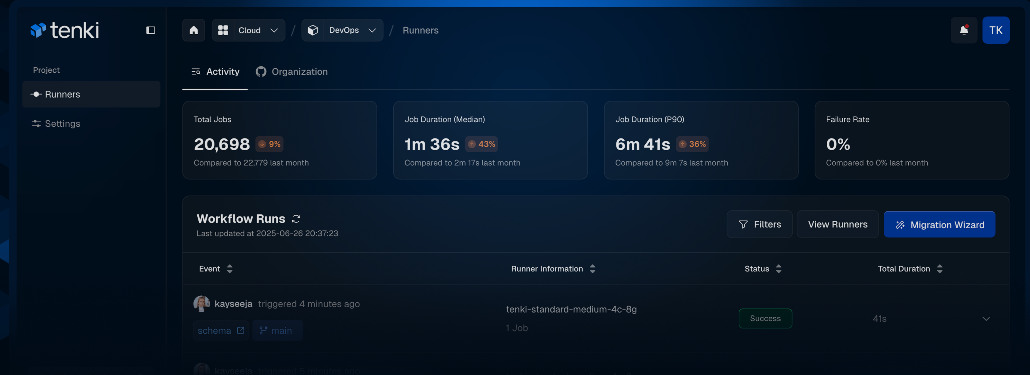 Tenki Cloud is a seamless CI/CD runner platform crafted by engineers for engineers, enabling the provisioning of jobs on high-performance bare-metal servers which facilitates GitHub Actions runners that are up to 30% faster and a fraction of the cost when compared to hosted alternatives. The platform maintains your current workflow settings and provides an easy two-click migration process, along with 12,500 complimentary minutes each month without requiring a credit card, and features autoscaling infrastructure that can activate bare-metal runners in less than two minutes without any complicated setup. Tenki integrates effortlessly with GitHub through a simple migration tool, supports role-based access controls, and minimizes operational tasks so that teams can prioritize writing code over managing build servers. Its user-friendly dashboard and detailed documentation simplify the onboarding process, while its development roadmap hints at exciting performance and feature updates on the horizon. As a result, Tenki Cloud not only enhances productivity but also allows teams to innovate more rapidly.