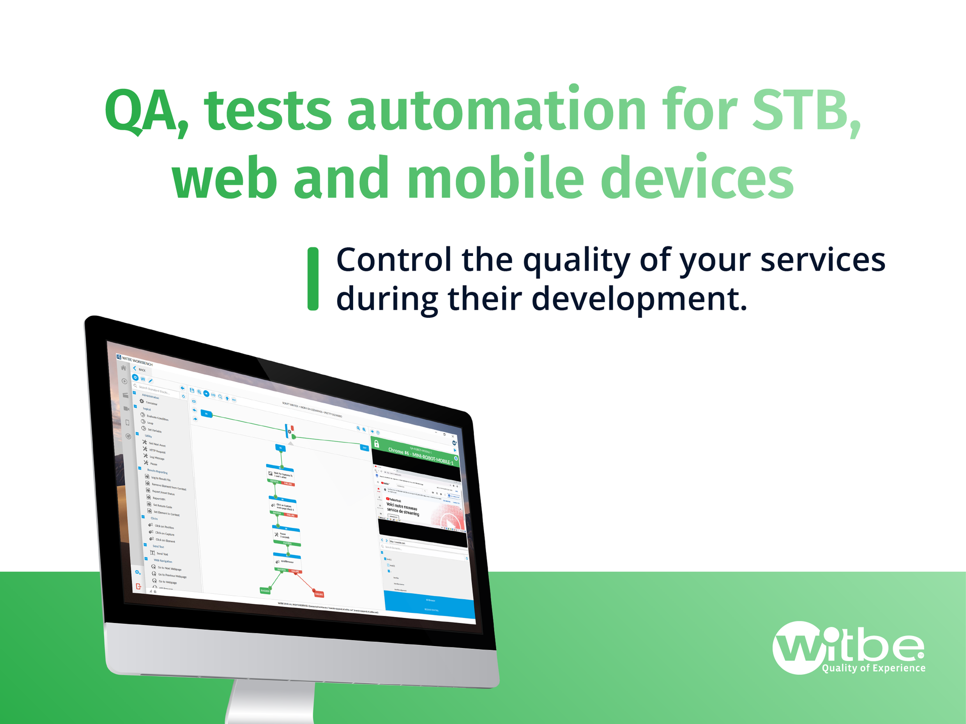 Witbe was founded in 2000 and has grown to be a trusted partner for more than 300 clients in over 50 countries. Witbe Robots is trusted by Broadcasters, Operators, and Content Providers.