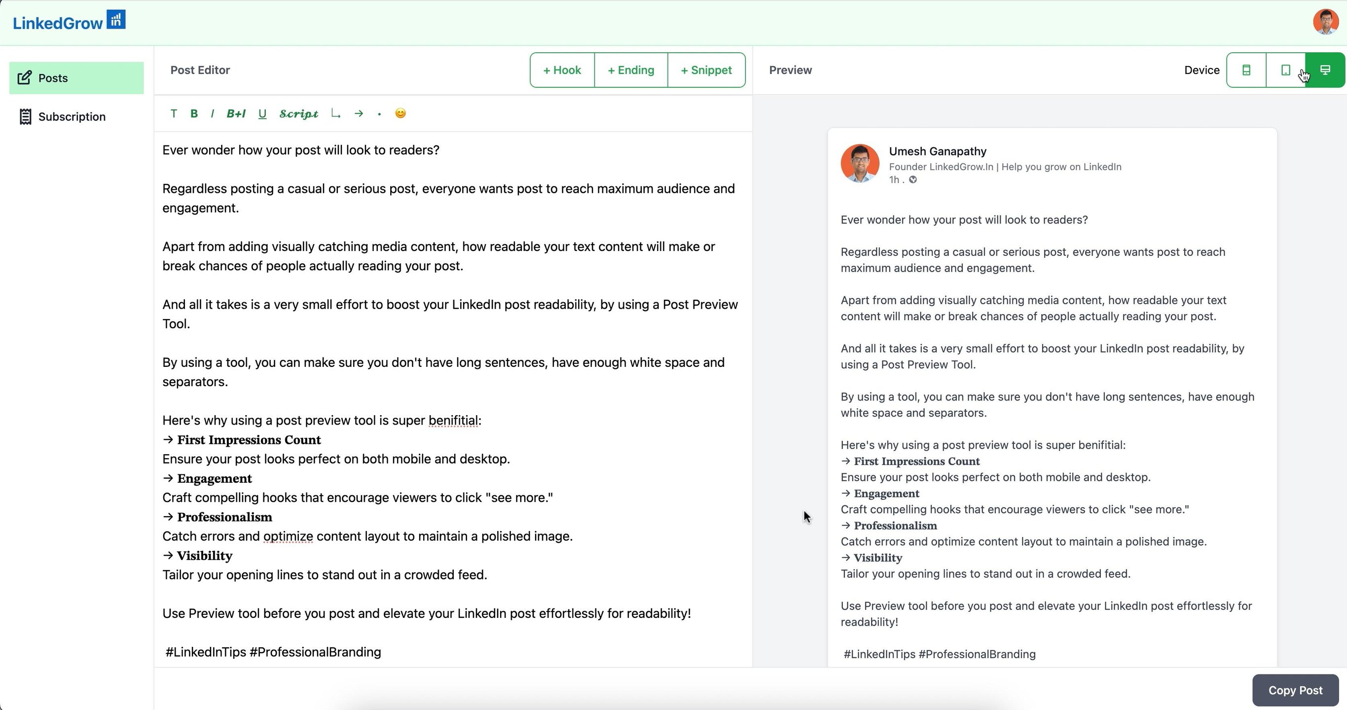 LinkedGrow.in, an AI-powered tool, is designed to help users create, schedule and analyze content efficiently. It has features such as automated post generation, detailed analysis, and lead generation capabilities. This is a one-stop solution for professionals who want to grow their network on LinkedIn.