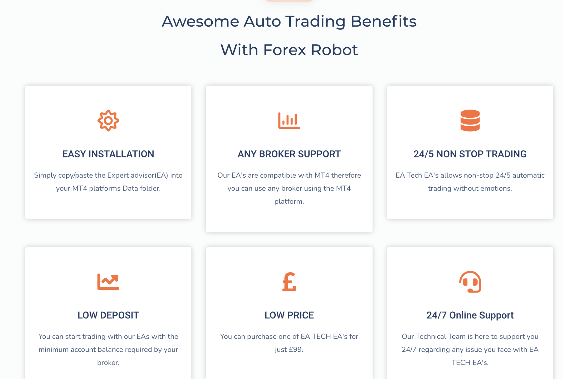At EA Tech, you can be confident that your financial aspirations are expertly managed. Opt for EA Tech to gain access to a sophisticated forex trading expert advisor robot, comprehensive market analysis, and up-to-the-minute market data all at competitive prices. If you're looking to eliminate the emotional aspect of trading, the EA TECH V4 Expert Advisor on MT4 may be just what you need. We pride ourselves on having one of the top automated trading systems that consistently drives success for our users. Our EA Tech VA empowers you to fully automate your trading strategies, removing emotions from your decisions for better outcomes. When you purchase the Forex EA Robot, you can customize settings for capital allocation, potential trades, and manage open or closed positions with ease. This automated solution employs a robust algorithm that keeps track of specific market conditions and executes trades according to your pre-defined criteria, ensuring you stay ahead in the trading game. With this innovative tool at your disposal, you can enhance your trading experience and focus on what truly matters—growing your investments.