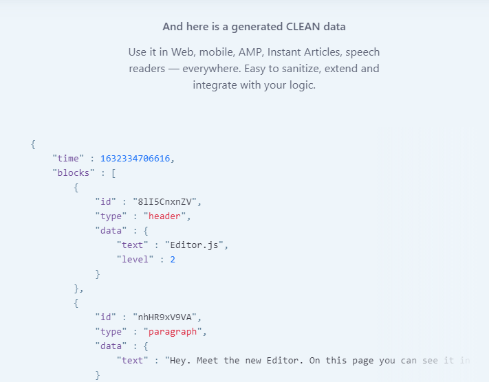 Introducing the next-generation block-styled editor, which you can experience in action on our website. This innovative editor is structured to provide clean data outputs in JSON format and is engineered for extensibility through a straightforward API. Unlike traditional editors that rely on a single contenteditable element to generate various HTML markups, Editor.js is built around independent Blocks such as paragraphs, headings, images, lists, and quotes, each functioning as a separate contenteditable element or more intricate structure, all seamlessly integrated by the Editor's Core. A wealth of pre-built Blocks is available, alongside an intuitive API that allows you to create custom Blocks tailored to your needs, such as those for Tweets, Instagram posts, surveys, polls, CTA buttons, or even interactive games. While conventional WYSIWYG editors produce raw HTML that encompasses both content data and its visual representation, Editor.js distinguishes itself by delivering a structured JSON object that encapsulates the data for each individual Block, ensuring clarity and flexibility in content management. This modern approach not only enhances user experience but also simplifies the development process.