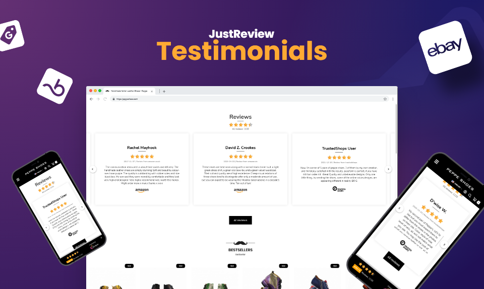 There are many useful reviews about your company online. They can go to waste if your customers don’t know about them. To make your product more trustworthy, gather all the reviews and embed them in your website. It's easy with us! Sign up now to get started. We can collect all of your reviews every day from the internet using advanced tools and magic technologies. We notify you when a review appears in any service, and embed it on your website immediately. We will help you make your offer more attractive for customers. We are proud of your satisfaction! JustReview allows you to collect all Testimonials and Reviews about your brand in one place. You can also include them on your subpages with the JustReview Badge. It's an easy and transparent way to build your social proof that actually works.