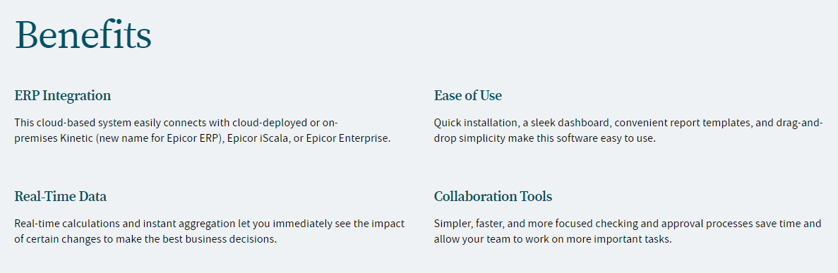 Modern businesses encounter numerous obstacles, including rising inflation, employee turnover, and decreased productivity levels. Epicor FP&A offers a cloud-based solution that revolutionizes your operational framework, streamlining financial reporting, optimizing processes, and equipping you to thrive in an ever-changing landscape. With the CFO at the helm and supported by advanced machine learning capabilities, your organization can be prepared to: