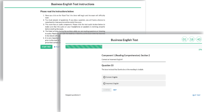Making well-informed choices is crucial for optimal outcomes. To assist you in selecting and developing the right personnel, Testello has introduced innovative assessment tools that are unprecedented in the Middle East. Among these tools is a groundbreaking Business English test, uniquely designed for this region. This assessment enables you to evaluate a potential employee's proficiency against international standards effectively. It examines the individual’s capability to comprehend and utilize Business English, providing a comprehensive breakdown of their strengths and weaknesses in an international business setting. Particularly suited for candidates in Mid-to-Senior Level roles, the test focuses on essential areas. Specifically, it evaluates the candidate’s reading and listening skills, delivering a thorough analysis of their grammar, vocabulary, business terminology, attention to detail, and general competency in applying English within a professional context. Ultimately, this test empowers organizations to make more strategic hiring decisions.