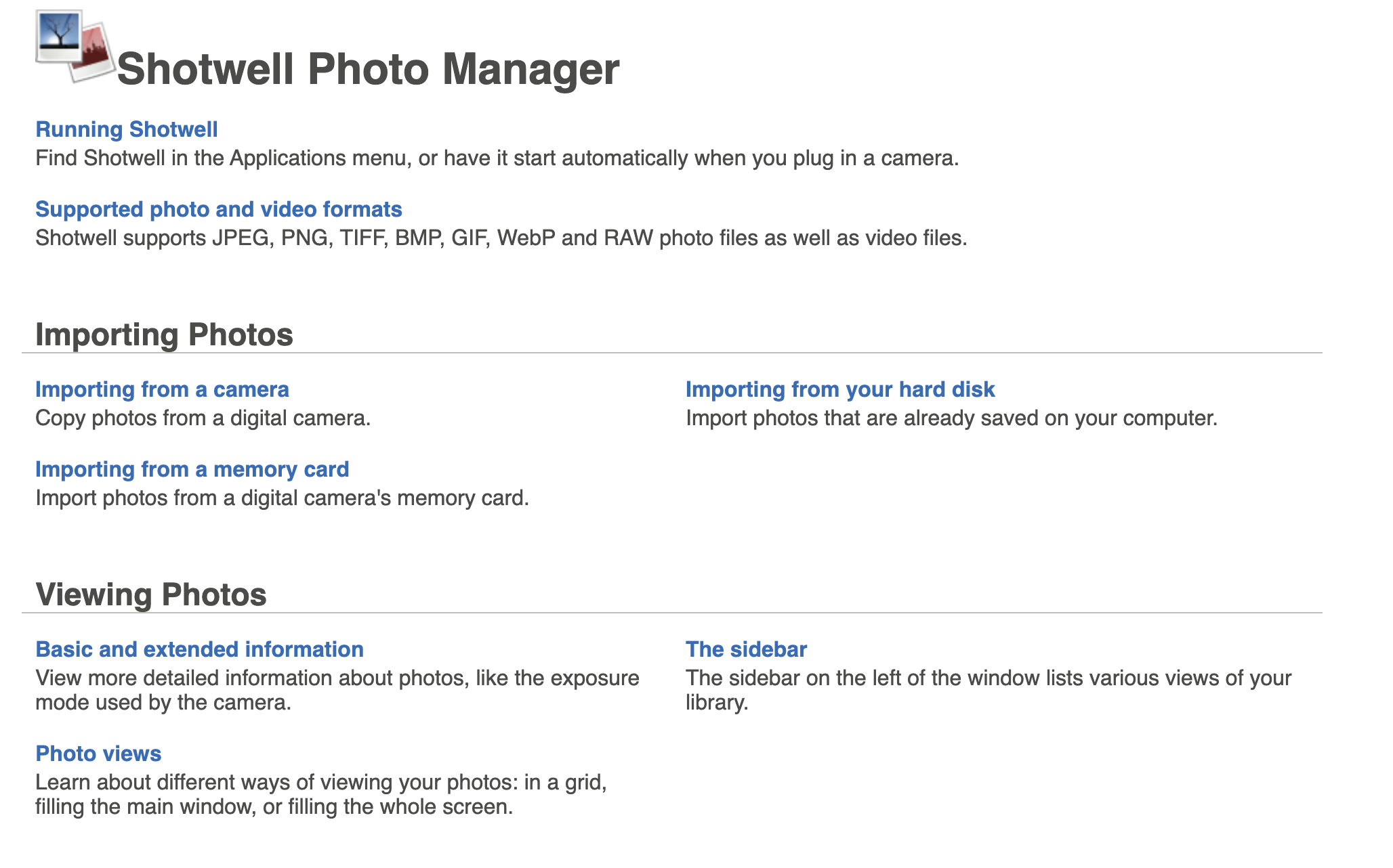 Shotwell is compatible with a variety of photo formats including JPEG, PNG, TIFF, BMP, GIF, WebP, and RAW files. However, its support for RAW formats is somewhat restricted, as viewing a RAW image actually presents a JPEG version derived from the original RAW file rather than the RAW image itself. Furthermore, the editing capabilities for RAW files are not fully 16-bit, limiting exports to 8-bit file formats. Users can export most supported formats, including JPEG, PNG, TIFF, and BMP. The Basic Information pane can be found at the bottom of the sidebar, providing a concise overview of the selected photos, while if no photos are highlighted, it gives a summary of the whole collection. You can easily toggle this pane's visibility through the information command. Additionally, the map pane is integrated into the Basic Information section, offering a visual summary of the photos you’ve chosen; if there are no selections, it will showcase an overview of the entire collection. This feature enhances the user experience by allowing for quick navigation and better organization of photos.