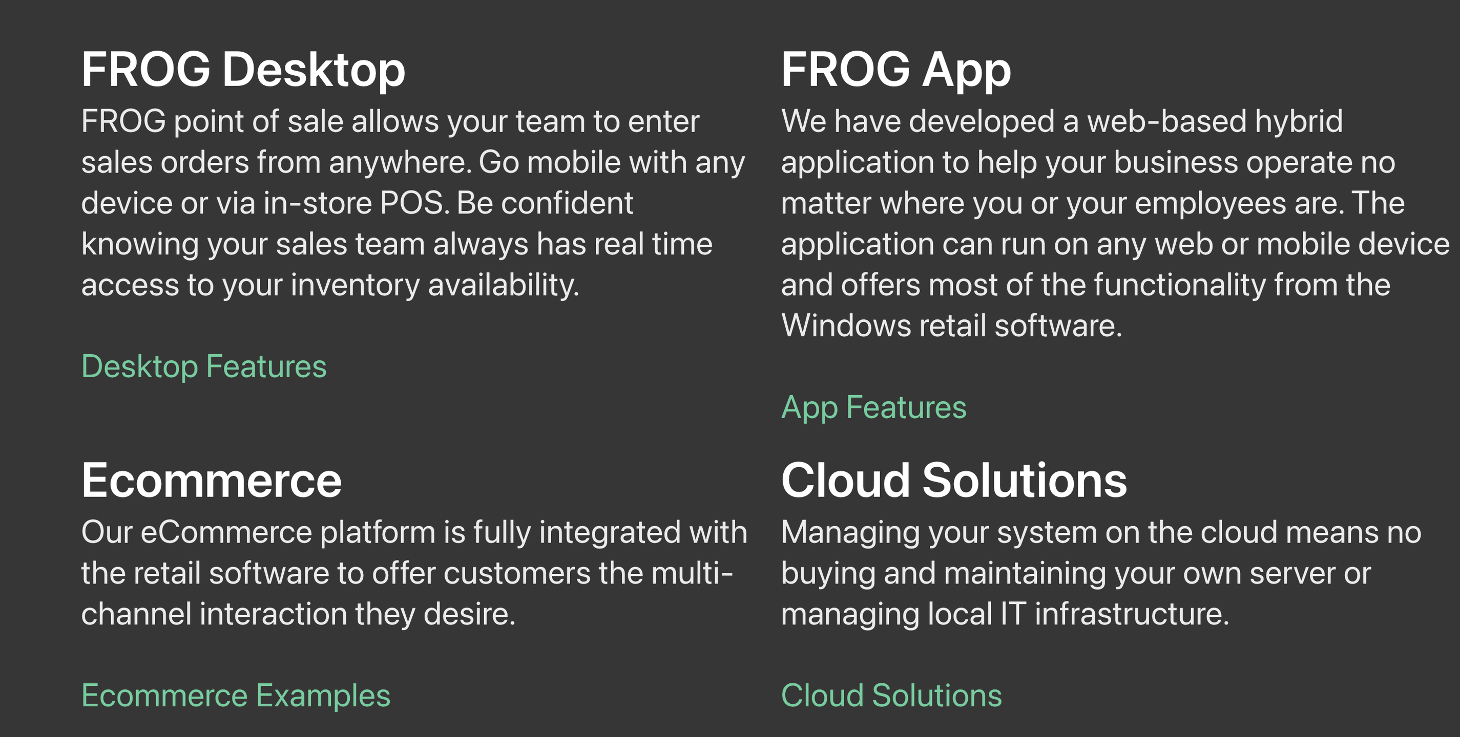 Our all-encompassing software solution seamlessly merges point of sale, customer relationship management, inventory oversight, service administration, eCommerce integration, and accounting functions like general ledger management and financial reporting. With FROG point of sale, your sales team can process orders from virtually anywhere, utilizing any device or the in-store POS system. You can have peace of mind, as your sales personnel will always have immediate access to real-time inventory levels. We have created a versatile web-based hybrid application that enables your business to function efficiently, regardless of your or your employees' locations. This application is compatible with any web or mobile device and retains most features found in the Windows retail software. Additionally, our eCommerce platform is fully synchronized with the retail software, ensuring that customers enjoy the multi-channel interaction they seek. This comprehensive approach not only enhances operational efficiency but also elevates the customer experience significantly.