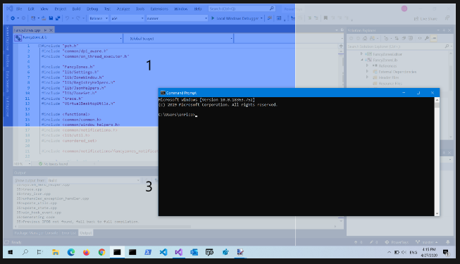 FancyZones serves as a window management tool designed to help users arrange and snap their application windows into optimized layouts, enhancing workflow efficiency and allowing for quick restoration of these layouts. This utility empowers you to specify a series of designated zones on your desktop where windows can be directed. By dragging a window into a predetermined zone or using a designated keyboard shortcut, the respective window automatically resizes and relocates to occupy that zone completely. Additionally, if you have the "Use non-primary mouse button to toggle zone activation" option activated, you can enter zone selection mode by simply clicking the secondary mouse button. When two zones are positioned next to each other, a window can be adjusted to span the combined area of both zones, effectively rounding up to the smallest rectangle that encompasses the two. As you maneuver the mouse cursor close to the shared boundary of two zones, both zones become active at the same time, giving you the flexibility to drop the window into either or both. Moreover, you can drag the window until it activates one zone and then, by pressing and holding the control key while continuing to drag, select multiple zones to expand your layout options. This feature significantly streamlines the process of organizing your desktop workspace efficiently.