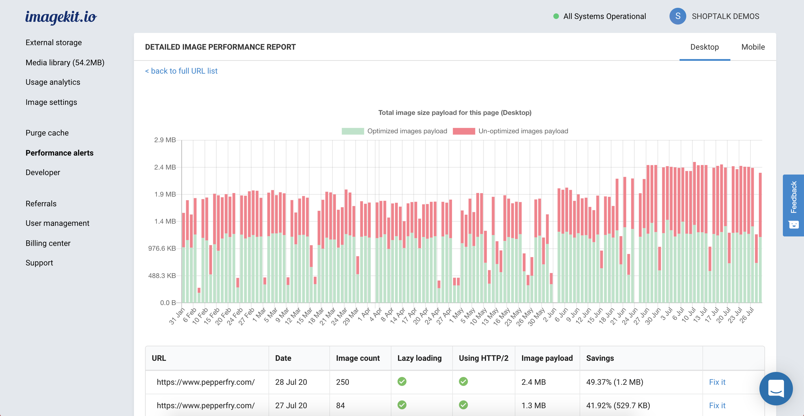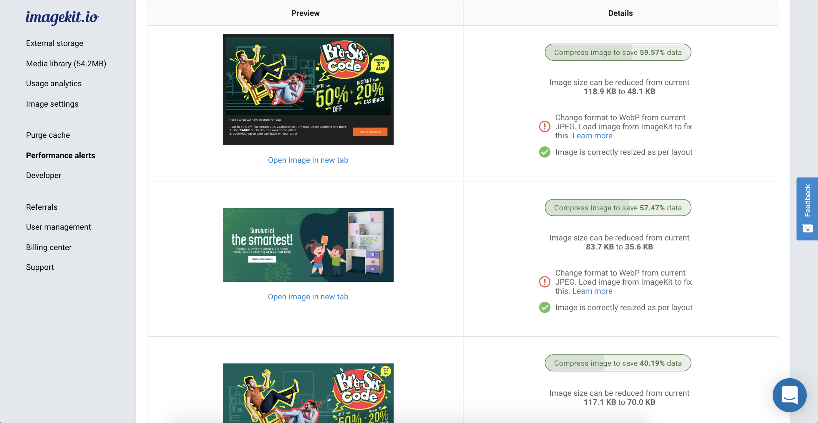 ImageKit.io provides a complete solution for image management and delivery on websites and mobile apps. It delivers high-quality visuals at a low cost without sacrificing performance. To use ImageKit's image delivery capabilities, all you need to do is to plug-in your existing storage. Real-time image optimizations such as smart cropping, watermarking and DPR transformations can be performed. Images will be delivered in the best format possible based on the device and browser of the user. ImageKit has been shown to reduce page weight by more than 30%, which results in a decrease in bandwidth usage. It also includes an Integrated Media library that allows you to upload, search, and organize assets for better team collaboration.