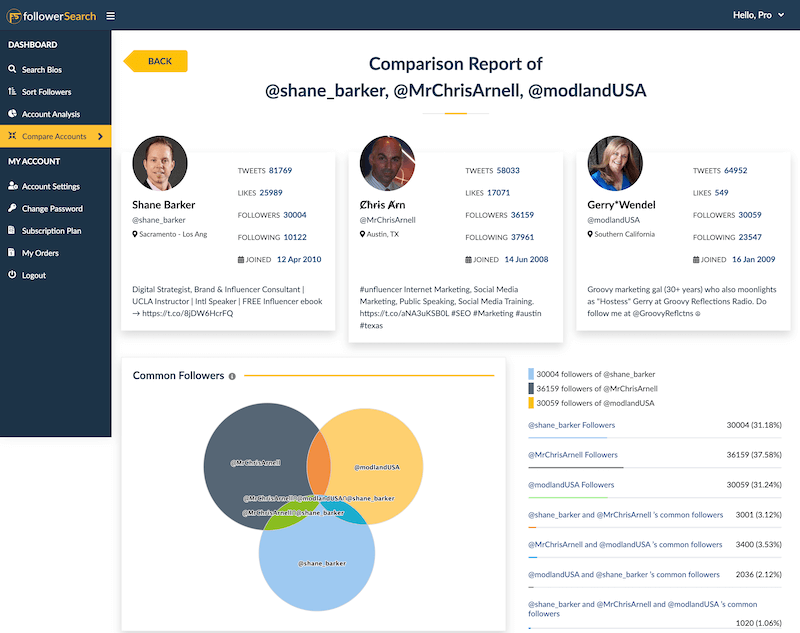 With a database of around 800 million twitter accounts, FollowerSearch is the best twitter analytics tool that can help you to search twitter bios, sort twitter followers of any public twitter account and compare & analyze twitter followers from millions of accounts at a go. FollowerSearch lets you plan your social media strategies, identify influencers of any niche, reach out to target audiences and much more, with the help of features and insights that makes it the best Followerwonk Alternative.