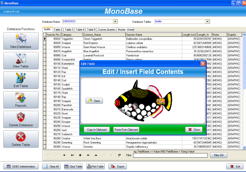 You can create flat or relational databases with unlimited fields, tables, and rows. A custom report builder is included. Create custom reports by connecting to compatible ODBC databases.