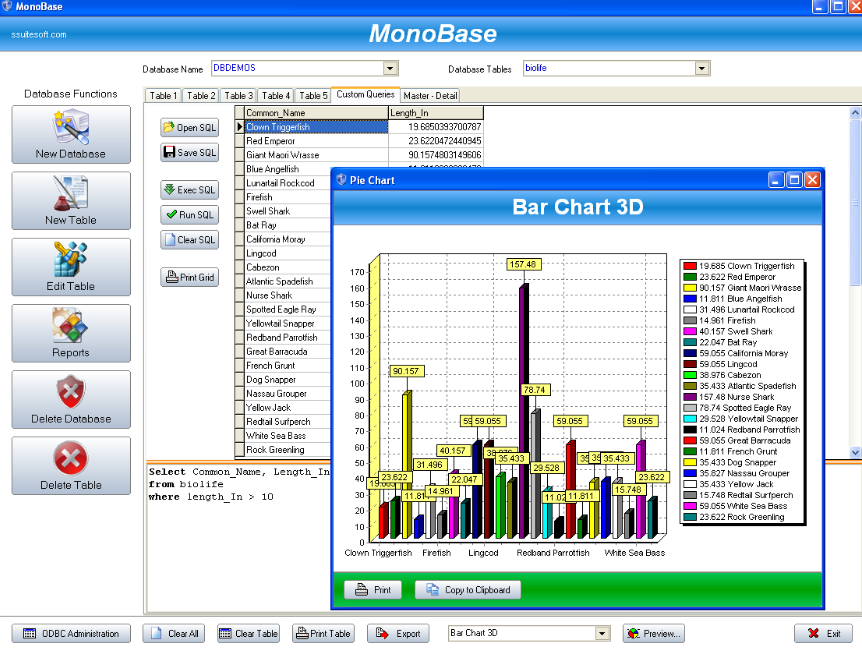 - You can print tables and queries directly from your data grid