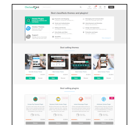 Osclass is localized into 30+ languages and contains location data for 255 countries. With Osclass, you can quickly create classifieds or marketplace, there is 150 plugins available to customize your features and 30 themes to customize appearance of website.