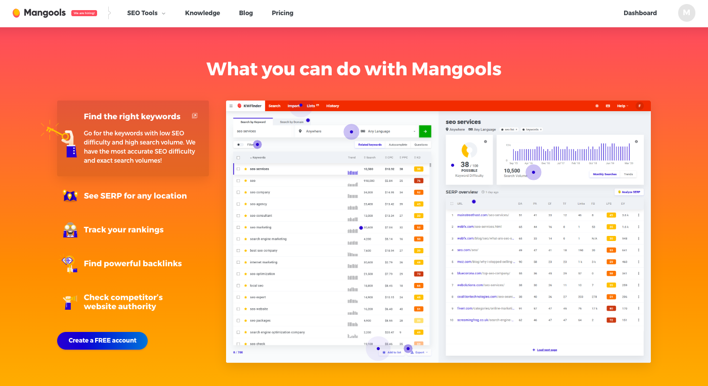 Mangools offers a range of SEO tools that are super-user-friendly. It covers everything from keyword research, rank tracking, competitor analysis, backlink analysis, and keyword research. The package includes tools and a browser extension.