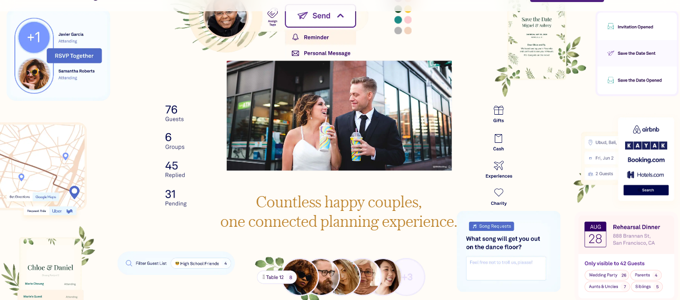 Experience wedding planning in an intuitive, thoughtful, and personalized manner like never before. Effortlessly stream virtual wedding events, distribute online invitations, manage RSVPs, gather guest photos, and much more with Joy, which supports you at every phase of your virtual celebration. Discover stunning website designs that come with complementary printed materials or digital invitations tailored to your unique style. From timeless classics to contemporary looks, uncover the design that resonates with your wedding vision. Whether you're drawn to a floral theme, a modern aesthetic, or feel uncertain about your choices, you can peruse through a vast selection of customizable website templates that reflect your personal taste. Select from an array of colors to create the perfect palette for your event, keeping in mind the latest trends or searching for that ideal shade of peach-ish plum. No matter what color inspires you, we have it available. Find the ideal font that suits your needs, whether you prefer a traditional serif or something more elegant; we're here to assist you. Dive deeper into customization by adjusting the CSS for those finer details, ensuring your wedding's online presence is as unique as your love story. With these tools at your disposal, creating the wedding of your dreams has never been easier.