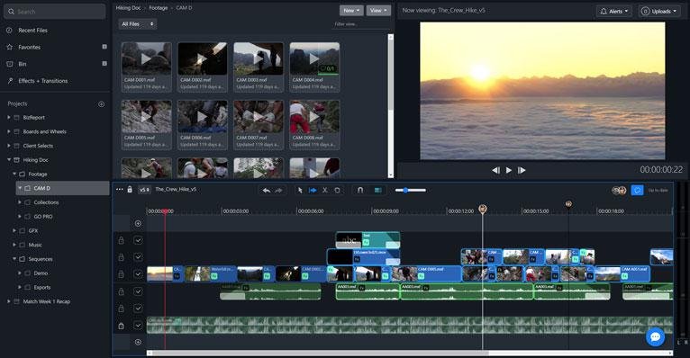 The collaborative video editor runs in a web browser and allows your team to work on the same sequences simultaneously, with clip changes and comments pushed live.