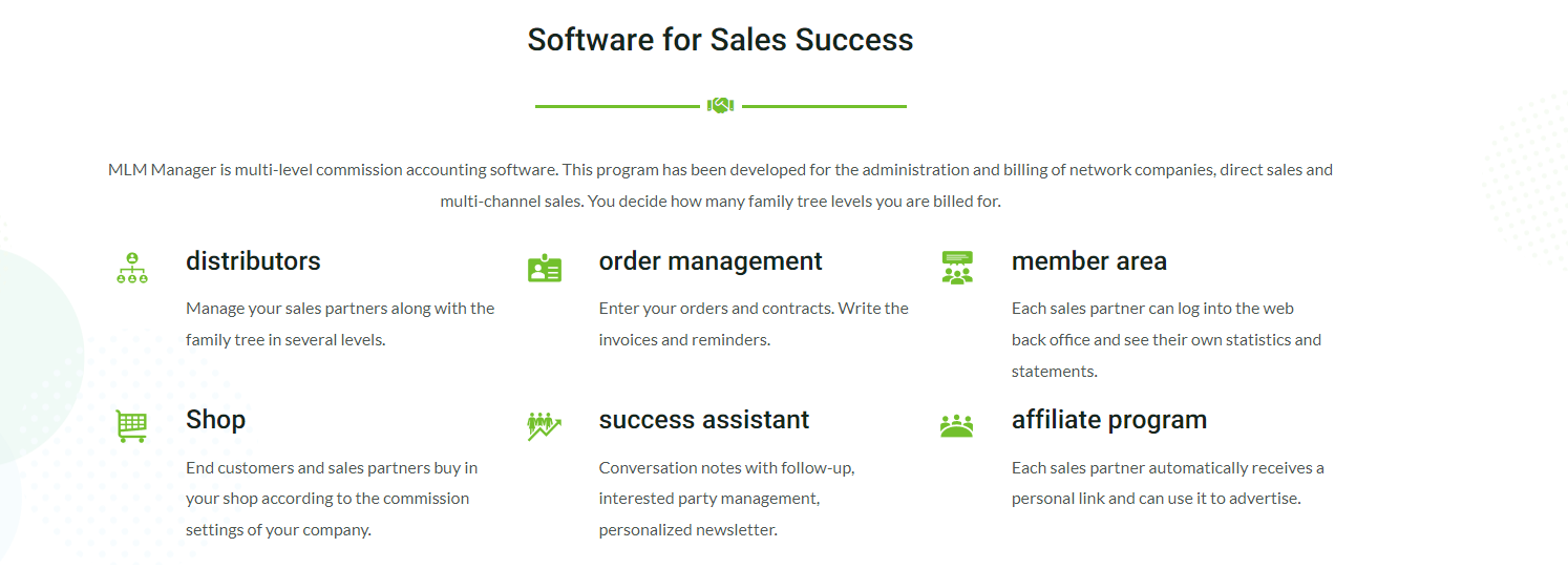 MLM Administrator is a commission accounting software designed to handle multiple levels of earnings. This application has been tailored specifically for managing the billing and administration of direct sales, network companies, and structural sales operations. Users have the flexibility to choose how many levels of the family tree they wish to include in their billing process. It allows for the calculation of success commissions for independent field staff, with varying commission rates applicable to different products. You can establish multiple commission keys to facilitate this differentiation. Each commission code can then be associated with its respective product. The system permits customization of commissions, whether as a fixed sum or a percentage of sales. Our team offers dedicated support to assist you in reviewing and setting up your commission structure effectively. Additionally, you can design various performance tiers and document the criteria necessary for advancement. Once all information has been accurately entered, you can effortlessly identify qualified sales partners with a single click and automatically categorize them into their corresponding career levels, streamlining your operational processes.