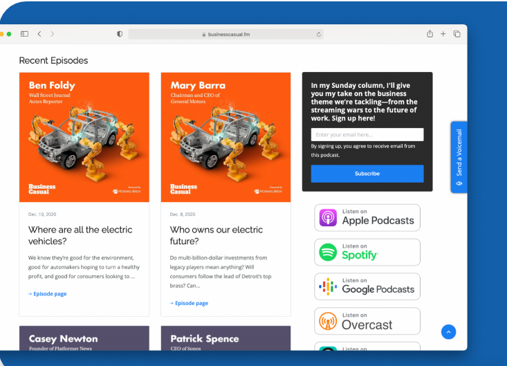 Effortlessly generate an attractive and user-friendly podcast website directly from your RSS feed. You can easily personalize the layout to achieve a polished appearance in just a few clicks, with no need for any coding or technical expertise. Each episode will feature automatically generated, search engine optimized pages that seamlessly integrate with your podcast host's media player. Additionally, you can showcase your episode transcripts alongside the show notes, as well as create dedicated pages and profiles for all your guests. Constructing your website can be accomplished in mere minutes rather than weeks, and it will automatically refresh whenever you publish a new episode. Many of our users frequently express their appreciation for how much simpler Podpage is compared to Wordpress. You can also gather email addresses for your mailing list, facilitating direct communication with your listeners. Encouraging interactions is easy; your audience can quickly send you emails, discuss episodes in the comments, or even leave voicemails for you to feature on your show, fostering a community around your podcast.
