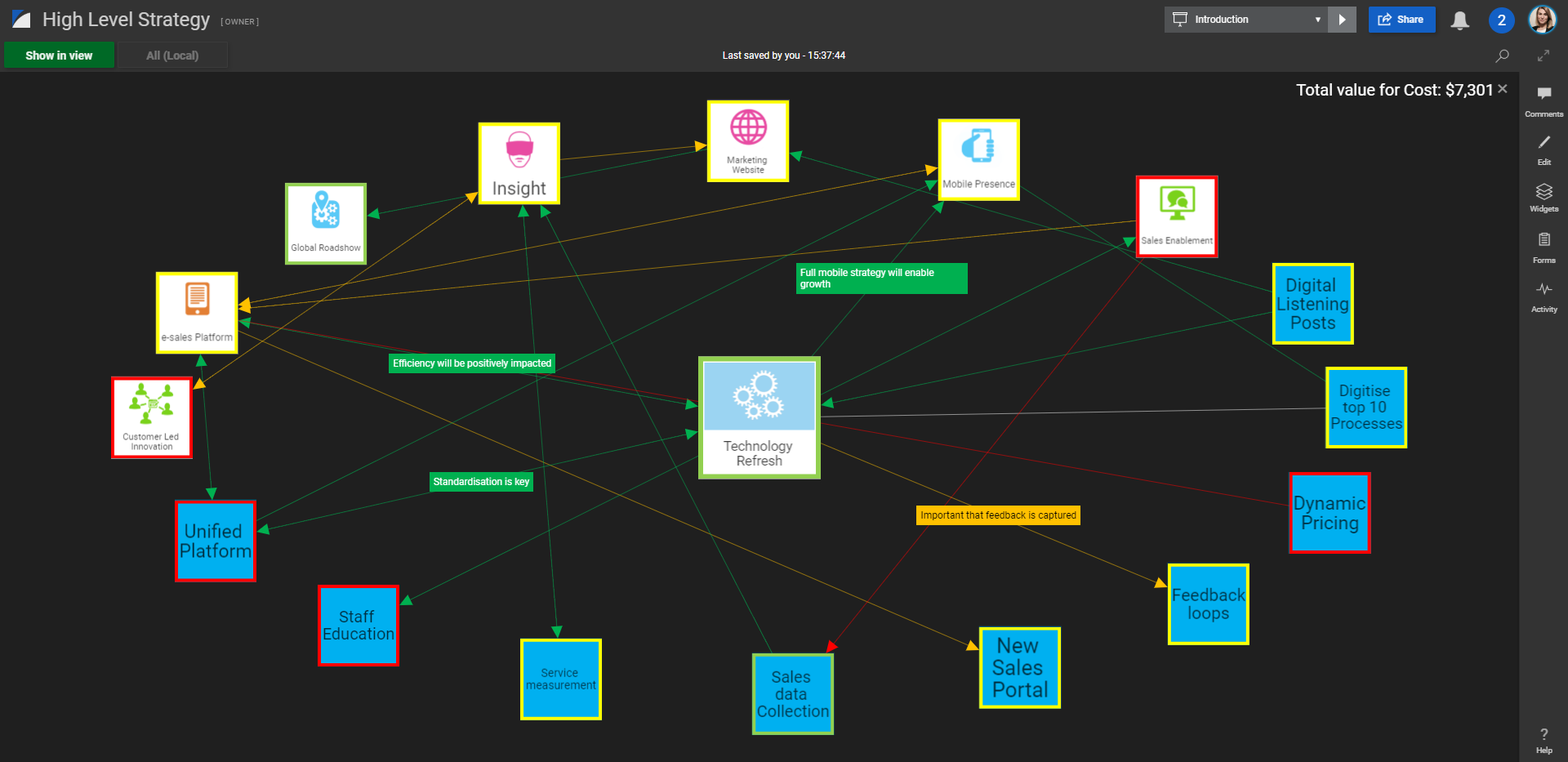SharpCloud is a data visualization tool that converts business data into visual stories that make complex interdependencies simple to understand. SharpCloud allows you to visualize strategic goals and tactical initiatives. It also provides meaningful insights that can be used to inform your decision-making. SharpCloud also offers a shared workspace that connects people and accelerates real time collaboration.