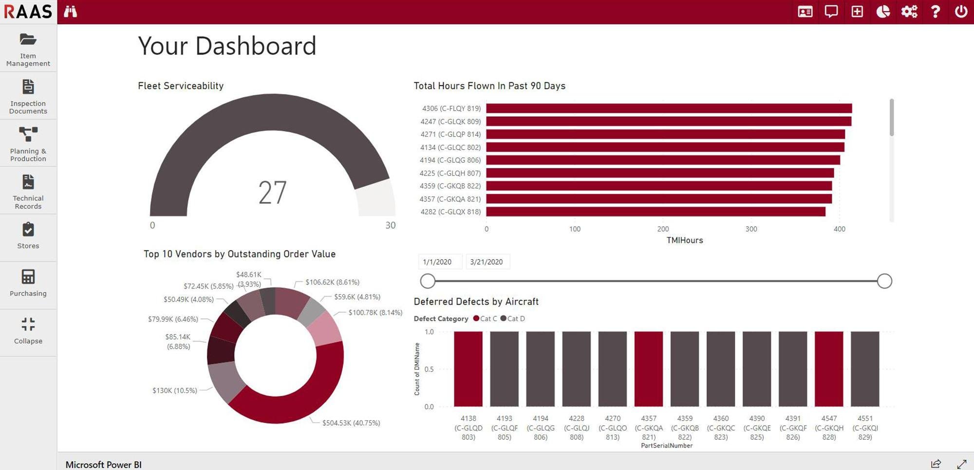 Remote Access Aviation System is an enterprise-grade, browser-based monitoring, evaluation (M&E), and data analysis solution that Aviation InterTec Services Inc. (AIS) developed. Designed for fleet operators, Maintenance, Repair, and Overhauls(MROs) and Continuing Airworthiness Management Organization (CAMOs), RAAS reduces maintenance costs by providing proof of quality for inspection escalations, reducing held inventory, and reducing clerical manpower. RAAS is intelligent and scaleable. It offers industry-leading features such as digital part certificate handling, inspection document management and centralized document library. Wireless barcode scanning and electronic maintenance status board are just a few examples of the many other industry-leading features.