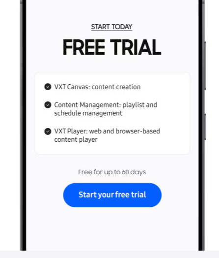 Samsung VXT offers a comprehensive cloud-based digital signage solution that seamlessly integrates user-friendly content creation, playlist scheduling, and remote display management into a single, secure platform. This innovative tool empowers businesses to either upload their own content or utilize pre-designed templates, which can then be scheduled or distributed to various screens situated in different locations, including standalone displays, video walls, interactive panels, LEDs, and hotel televisions. The system simplifies device registration through a straightforward six-digit pairing code and includes essential modules like VXT CMS for managing content and playlists, VXT Canvas for easy drag-and-drop creation, and VXT Player for playback on devices, all built on a cloud-native framework. Additionally, with its robust remote management features, administrators have the ability to monitor the status of screens, control power settings, lock inputs, modify configurations, and receive timely alerts regarding potential issues, thereby eliminating the need for on-site service interventions. This capability ensures that businesses can maintain optimal performance and respond efficiently to any technical challenges that may arise.