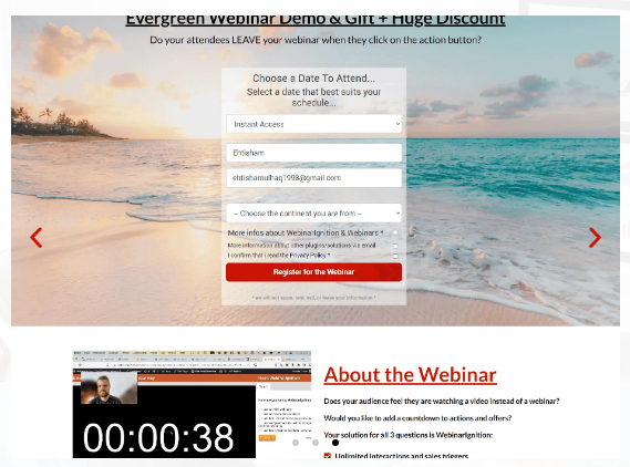 Improve your webinars. WebinarIgnition offers the most flexible platform to create professional webinar funnels. You can customize registration, confirmation, live and replay pages. Live Video Feed Integration (Including Youtube Live). Reminders for Email & Text Messages Q&A/chat integration. Tracking of sales and conversions. No monthly fee Run engaging, high-converting live webinars. You can create evergreen webinars that you can run 24/7 from your website or sales funnels. As each registrant can also be added to your email address, you can begin building a list targeted buyers and prospects. The 'Live Console' allows you to manage questions, call-to action messages, and detailed reports. WebinarIgnition is compatible with WordPress CMS. This makes it super easy to set up and manage webinar campaigns from the WordPress dashboard. WebinarIgnition integrates with all major email auto-responders, including Aweber, iContact and SendReach.