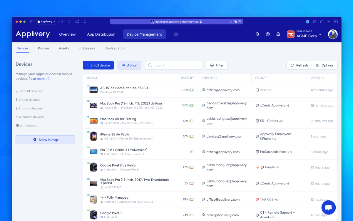 Applivery stands out as a highly effective Unified Endpoint Management (UEM) platform, offering comprehensive oversight for App Distribution and Device Management across Android, Windows, and Apple devices. This user-friendly, cloud-based Mobile Device Management (MDM) solution ensures streamlined remote management while maintaining exceptional security standards. Designed to fit effortlessly into businesses of any scale, it can be configured in just a matter of minutes, making it an ideal choice for rapid deployment. Furthermore, its intuitive interface helps organizations maximize productivity by simplifying the management of their endpoints.