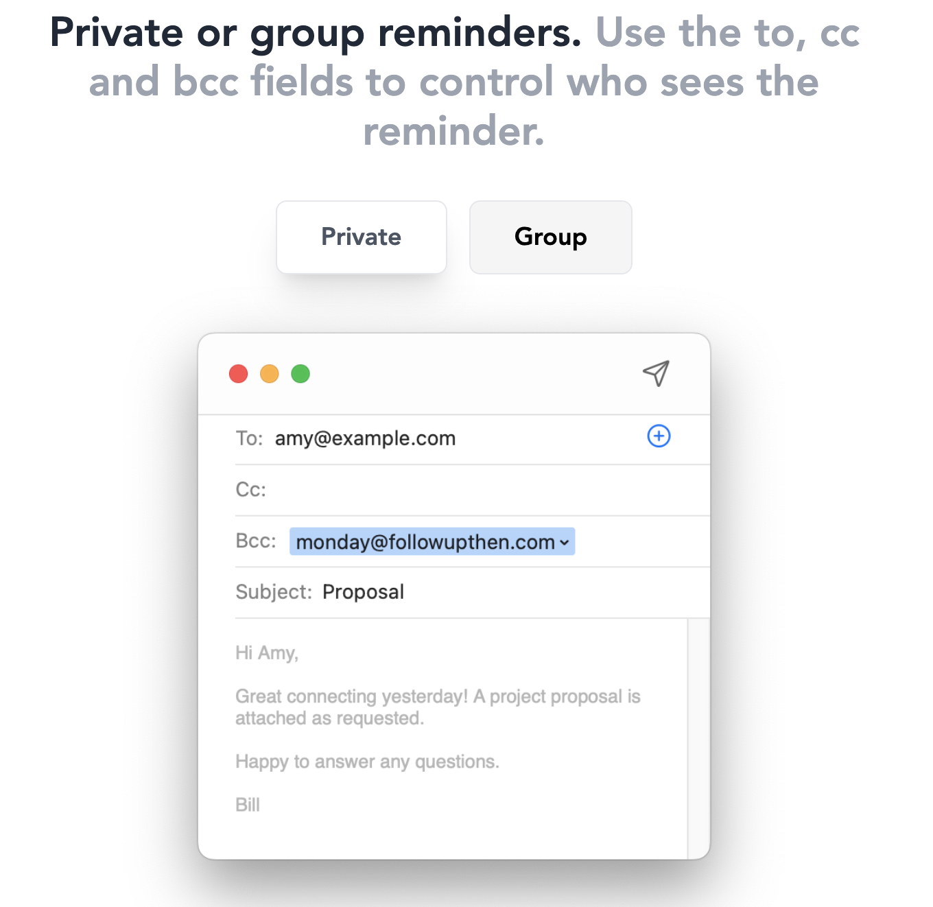 FollowUpThen offers a straightforward and adaptable email address compatible with any email platform on any device. Discover below how utilizing this convenient email address can enhance your efficiency. As you delve into the features, consider how often you’ve encountered the same email lingering in your inbox simply to remind yourself of its content. Instead, why not forward it to FollowUpThen? It will return to your inbox precisely when you need it, keeping your workspace uncluttered. Achieving inbox zero may be more attainable than you realize. Take charge like a personal assistant and set up reminders that make your future self grateful. You can schedule the necessary information to appear at just the right moment—whether it's contact details, links, or travel documents. Additionally, our tasks feature guarantees that important actions are completed, and you can receive SMS notifications for those critical reminders. If you’re emailing someone prone to forgetfulness, our response detection feature ensures that your message doesn’t get overlooked, acting as a safety net for your communications. Embrace the potential of FollowUpThen and transform the way you manage your tasks and reminders.