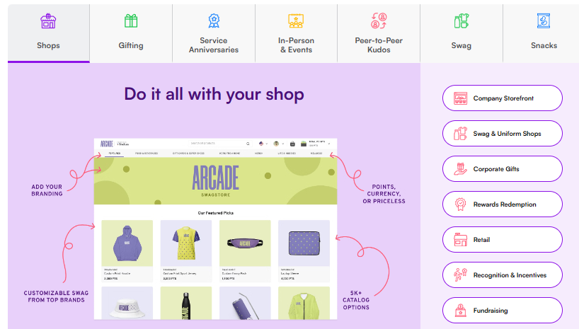 Unite all team members on a dedicated platform designed to enhance recognition, swag, and overall engagement. Our tailored offerings and exclusive swag catalog will elevate your engagement efforts significantly. Explore endless opportunities with our extensive catalog, which includes onboarding shops and swag kits to facilitate employee integration. Streamline HR operations, acknowledge employee achievements, and enhance the overall employee experience using Stadium's solutions. Automate celebrations for work anniversaries and significant milestones through targeted campaigns. Cultivate a vibrant company culture with a peer-to-peer recognition initiative. Amplify brand visibility, support marketing strategies, and draw in new clients through the capabilities of Stadium. Prevent unauthorized use of your company's logo by managing swag effectively. Commemorate rebranding efforts with a dedicated swag shop for staff members. Initiate a client gifting campaign to effectively promote new product launches. Strengthen and attract strategic partnerships with a selection of local eats, snacks, and more. Encourage a positive team environment by combining rewards, recognition, and gifting strategies, fostering unity and motivation among employees. By implementing these initiatives, your organization can build a stronger sense of community and commitment.