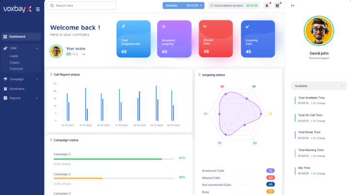 The platform includes Predictive, Power, and Auto Dialers for efficient and personalized calling. Its AI-powered Smart Insights analyze call sentiment, while Dynamic Caller ID, Spam Shield, and SHAKEN/STIR compliance ensure higher connection and answer rates.